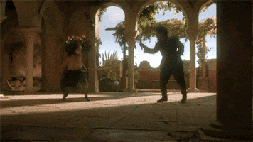 Планы Пса по отношению к ней предельно просты- обменять ее на золото у ее матери. Именно поэтому они отправляются во владения Уолдера Фрея, где вовсю готовятся к свадьбе. На подъезде к башням-близнецам совершается предательство Старков и кровавая бойня. Видя, как убивают лютоволка Робба Сарка, а изуродованное тело брата отправляют скакать на лошади, Арья убивает одного из патрульных Фрея, остальных на тот свет отправляет Сандор Клиган.