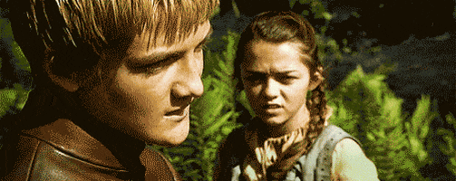 Герой с отцом едет в Винтерфелл, где должна состоятся его помолвка с Сансой Старк. Во время прогулки с невестой он замечает дерущихся на деревянных мечах Арью Старк и ее друга Мику. Принц вызывает молодого человека на поединок. Защищая Мику, Арья бросает меч будущего короля в реку. От гнева принца ее спасает лютоволчица Нимерия - кусает Джоффри за руку.